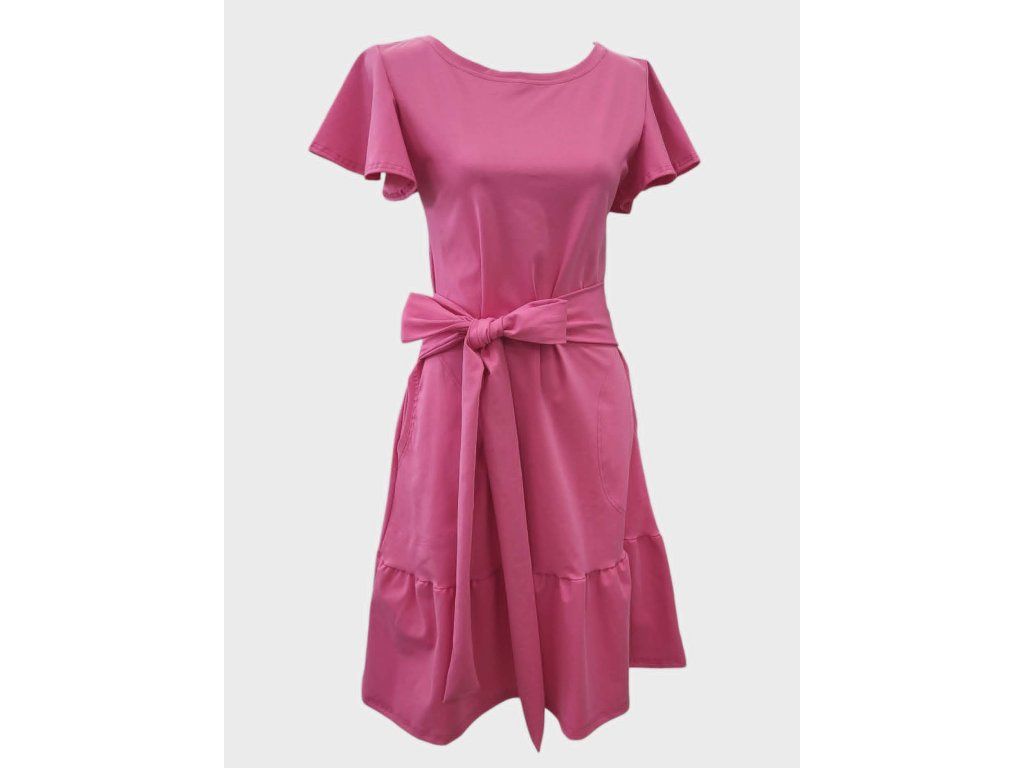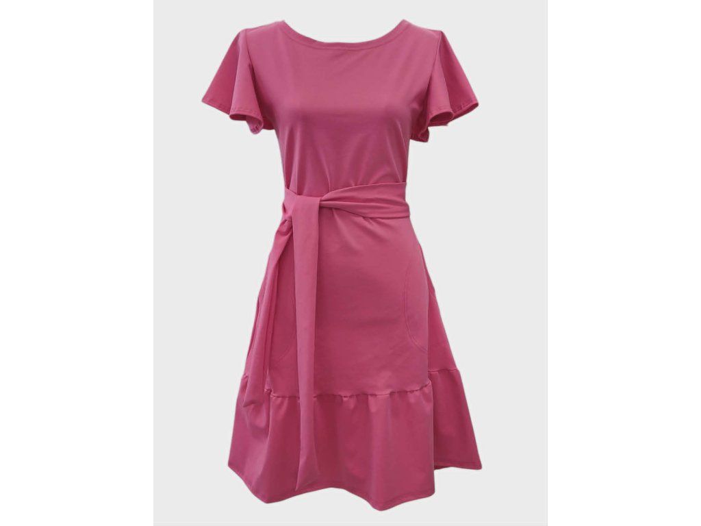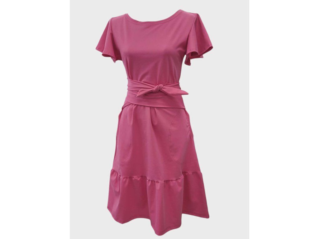 Šaty áčkového střihu zakončené kanýrem s vázáním