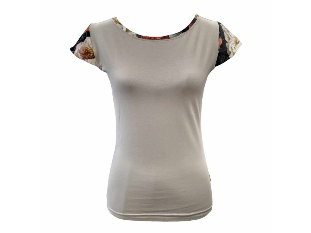 Tričko základního střihu ozvláštněné odlišným lemováním u krku