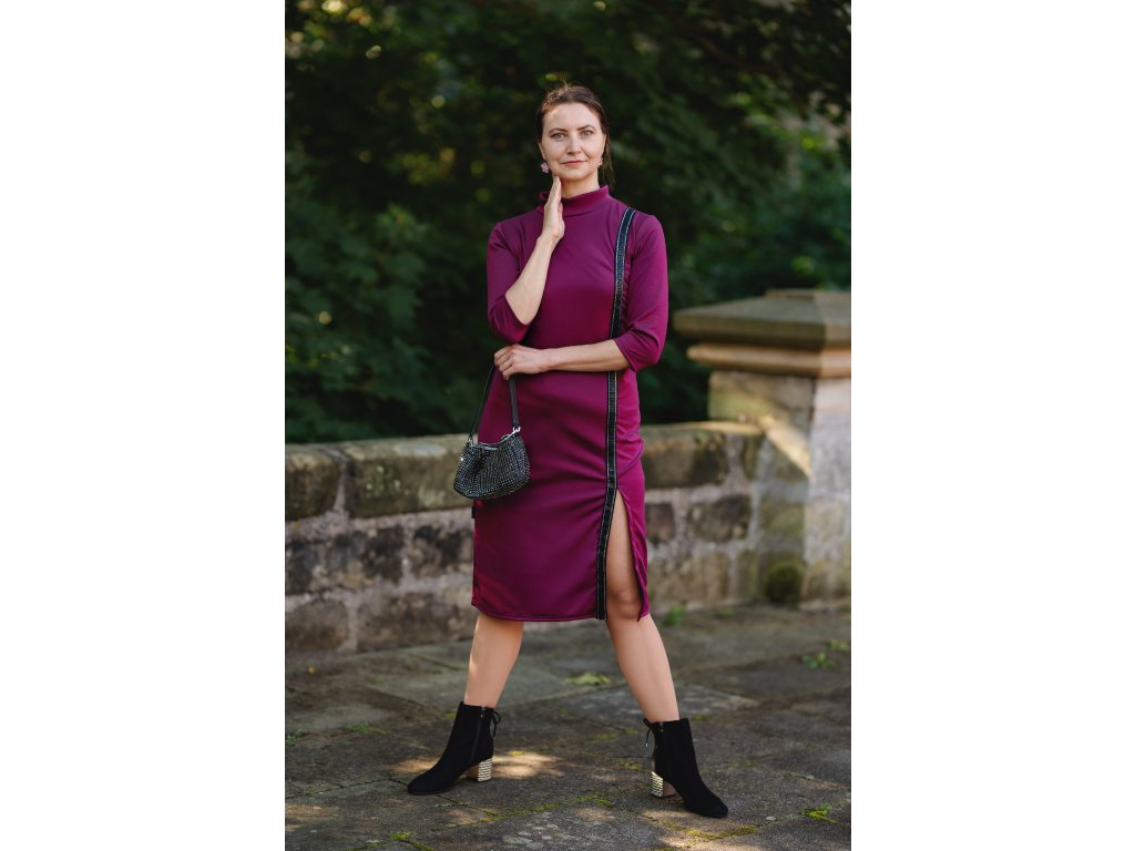 Elegantní šaty se stojáčkem a rozparkem