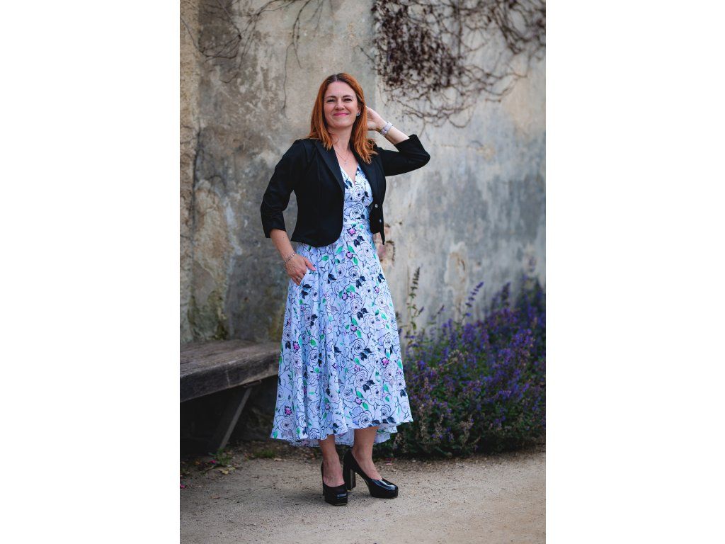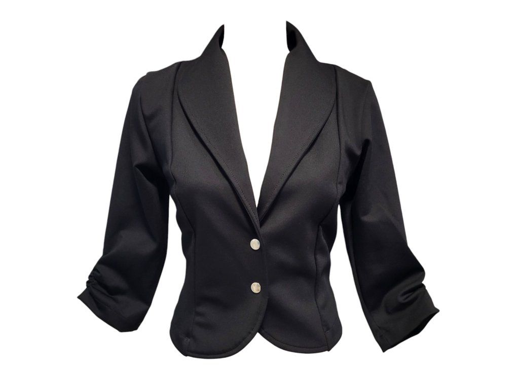 Kratší délka saka vhodná ke kombinování s našimi pasovými sukněmi.