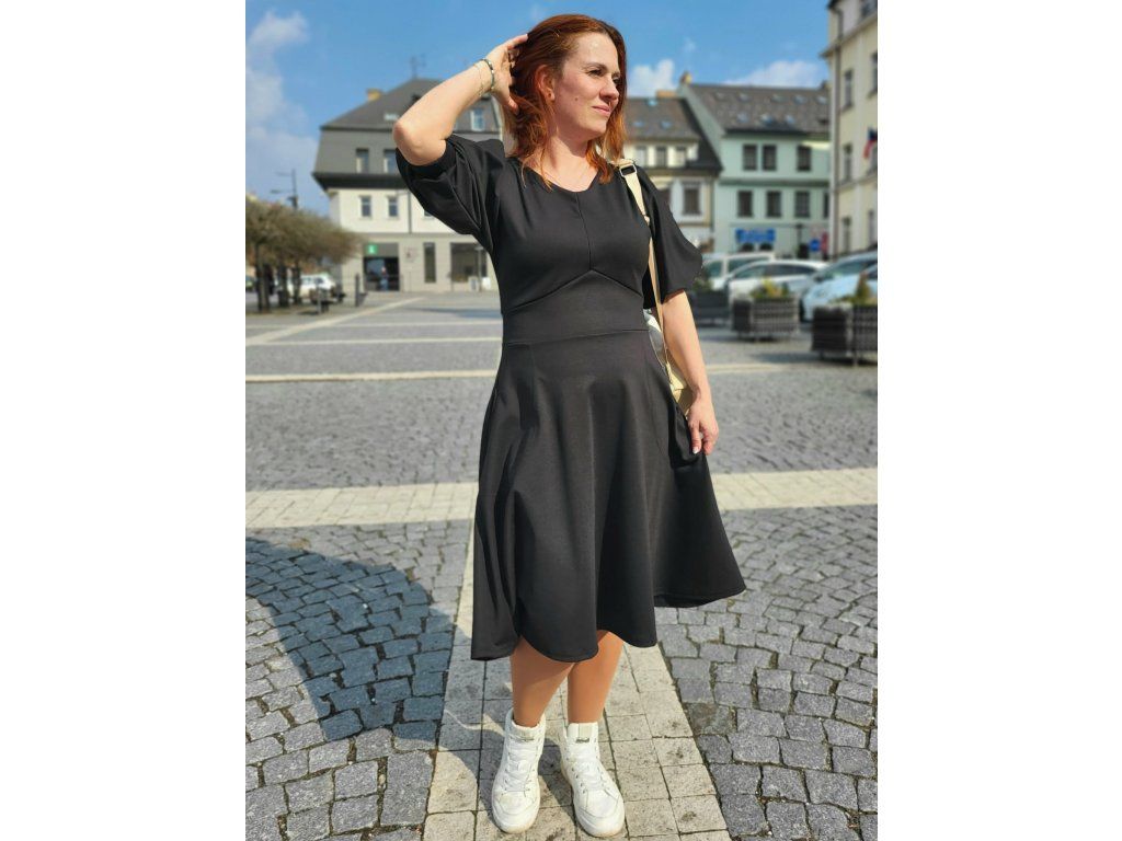 Elegantní úpletové šaty s půlkolovou sukní
