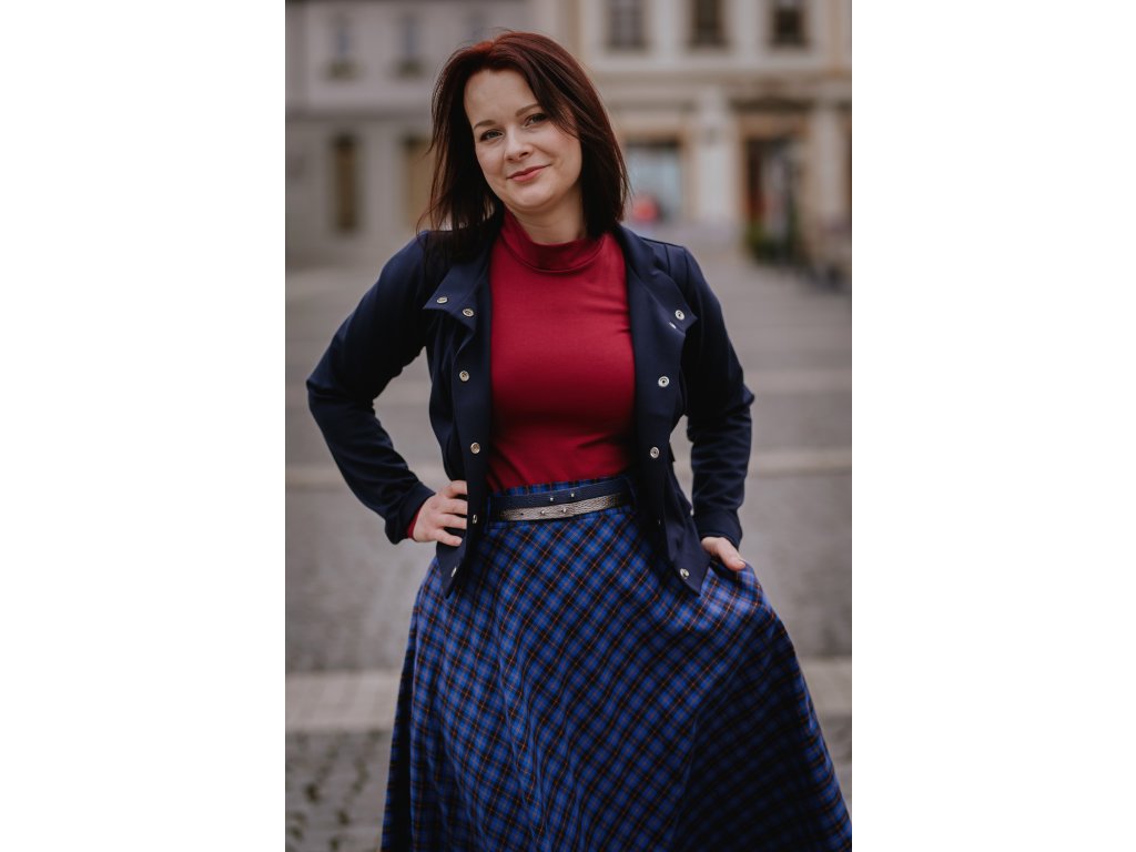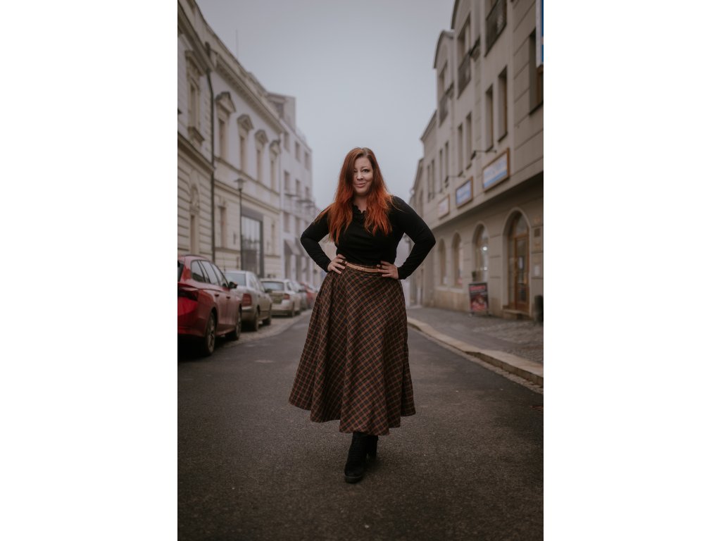 "Karamelka" Hnědá - tartanová - Půlkolovka - 85cm