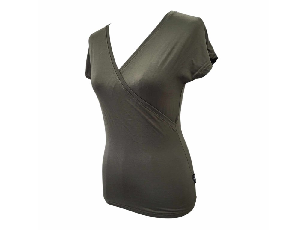 Khaki Lilu - hlubší lodičkový/křížený výstřih - bambus