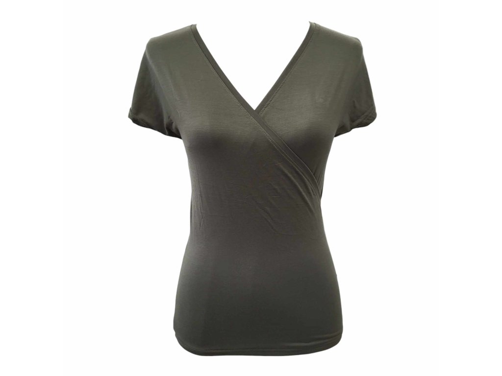 Khaki Lilu - hlubší lodičkový/křížený výstřih - bambus