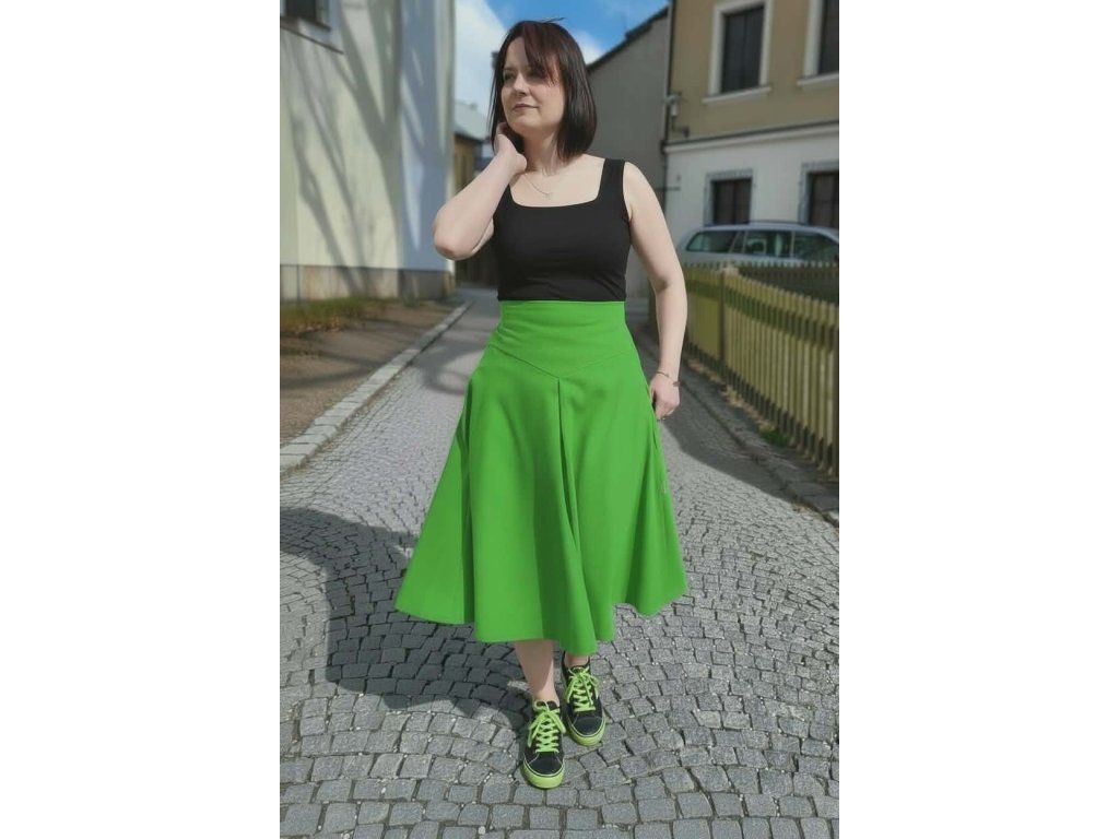 Katty je nevšední půlkolová sukně s výrazným vysokým pasem,