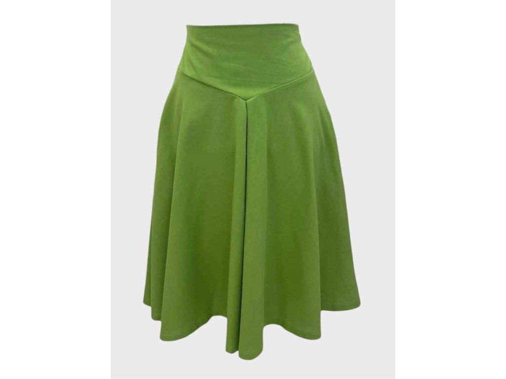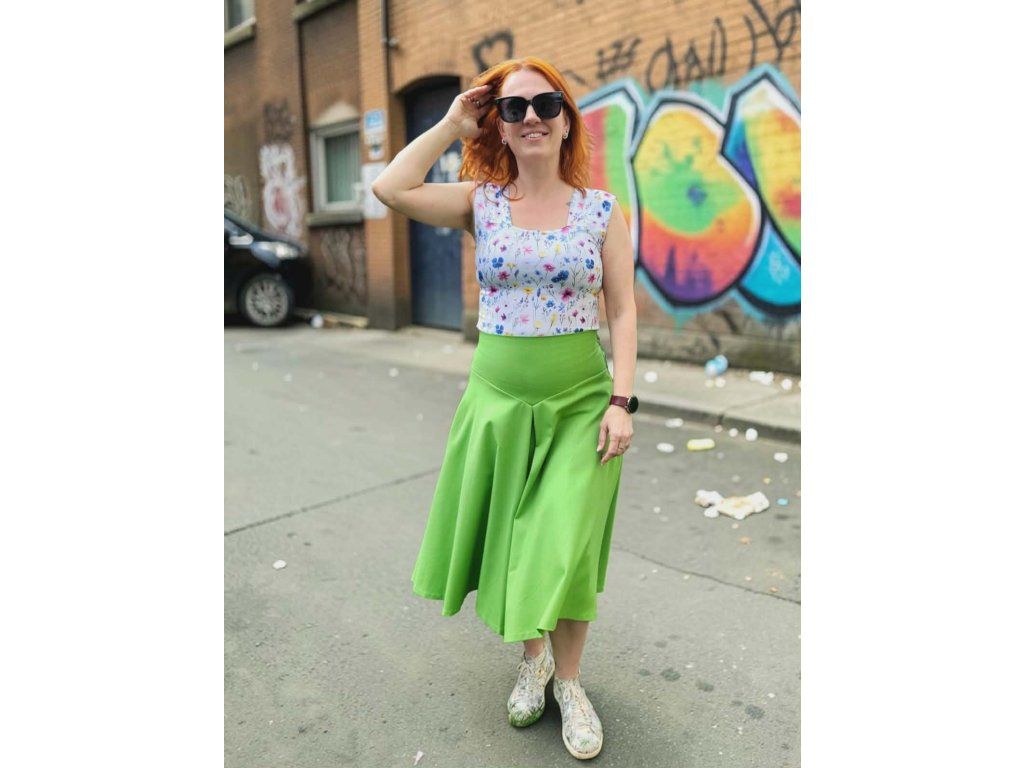 Katty je nevšední půlkolová sukně s výrazným vysokým pasem,