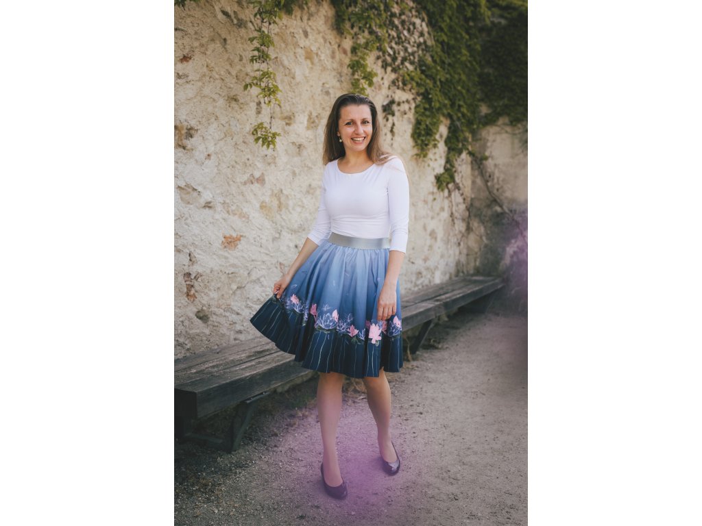 Sukně: 100 % bavlna – kepr, velmi pevné bavlněné plátno, drží tvar a vyznačuje se dlouhou životností