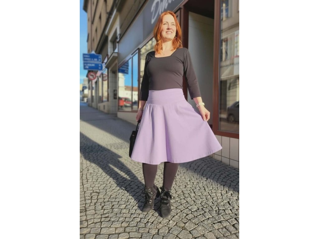 Katty je nevšední půlkolová sukně s výrazným vysokým pasem,