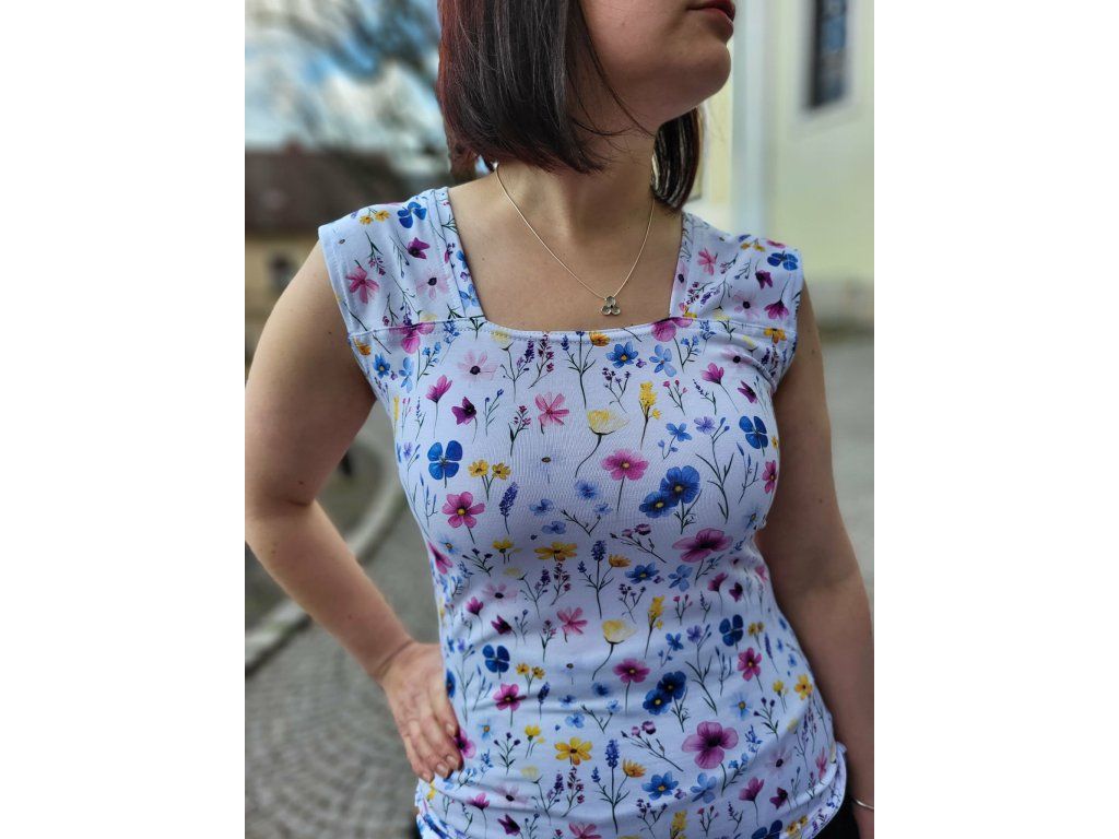 To je naše tričko Daisy – rozpustilé a neokoukané díky hranatému výstřihu.