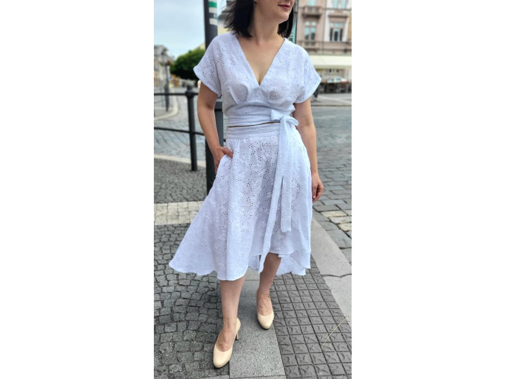 Asymetrická půlkolová sukýnka s polopevným pasem