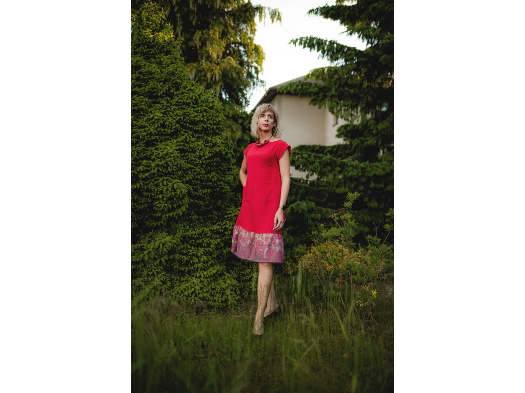 Dolní díl je zakončený nařaseným kanýrem, upoutá pozornost a šaty oživí.