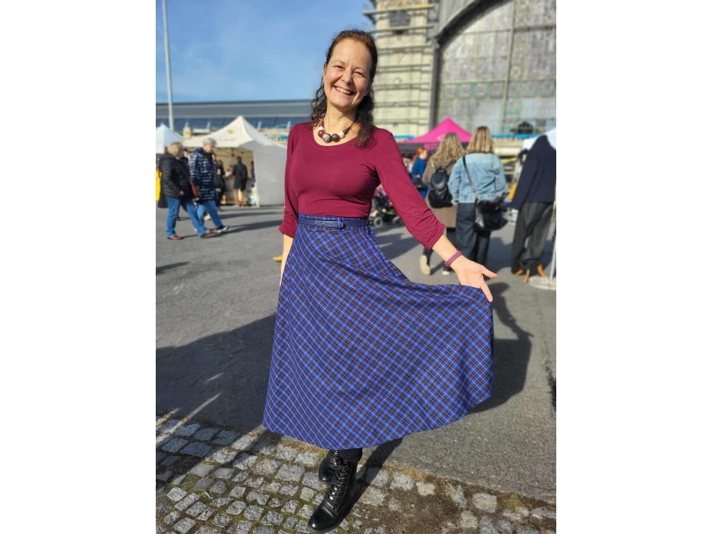 Modrá tartanová - Půlkolovka - 85cm