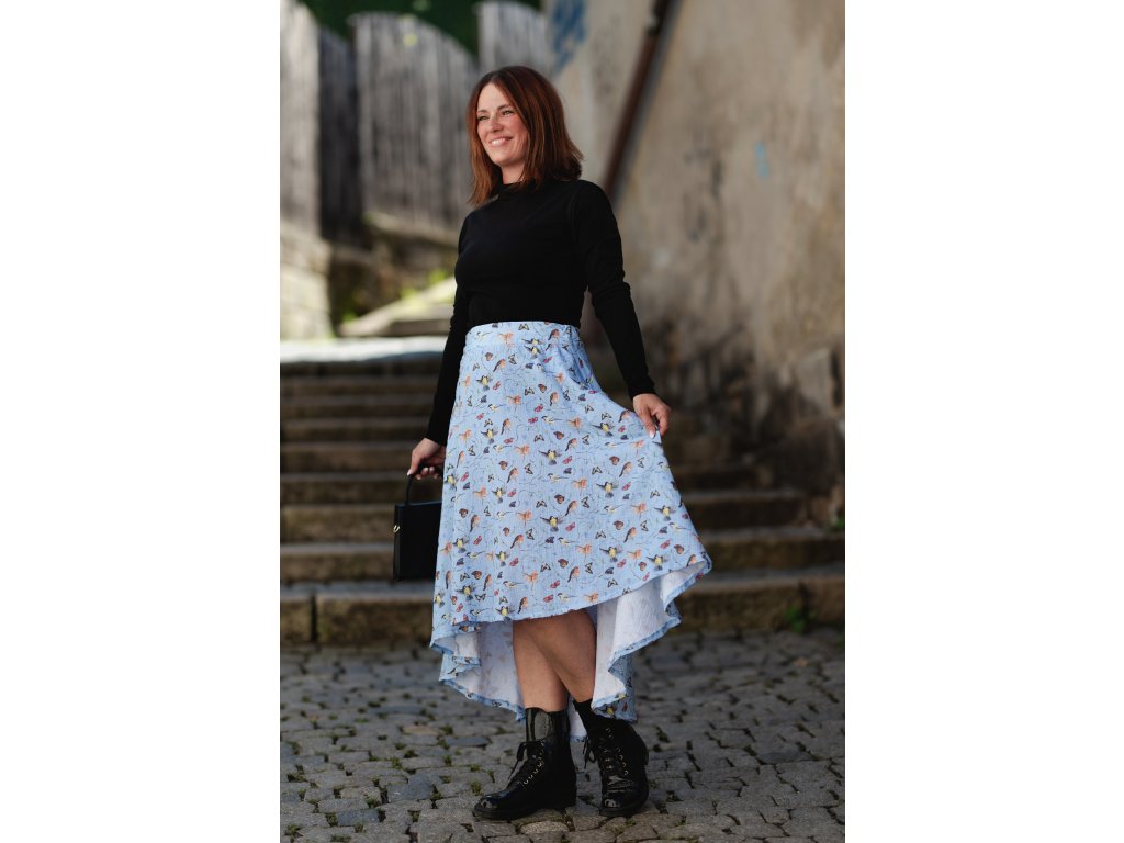Asymetrická půlkolová sukýnka s polopevným pasem