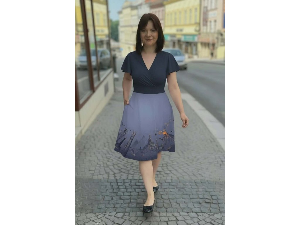 Amelie jsou půlkolové šaty s krátkým živůtkem,
