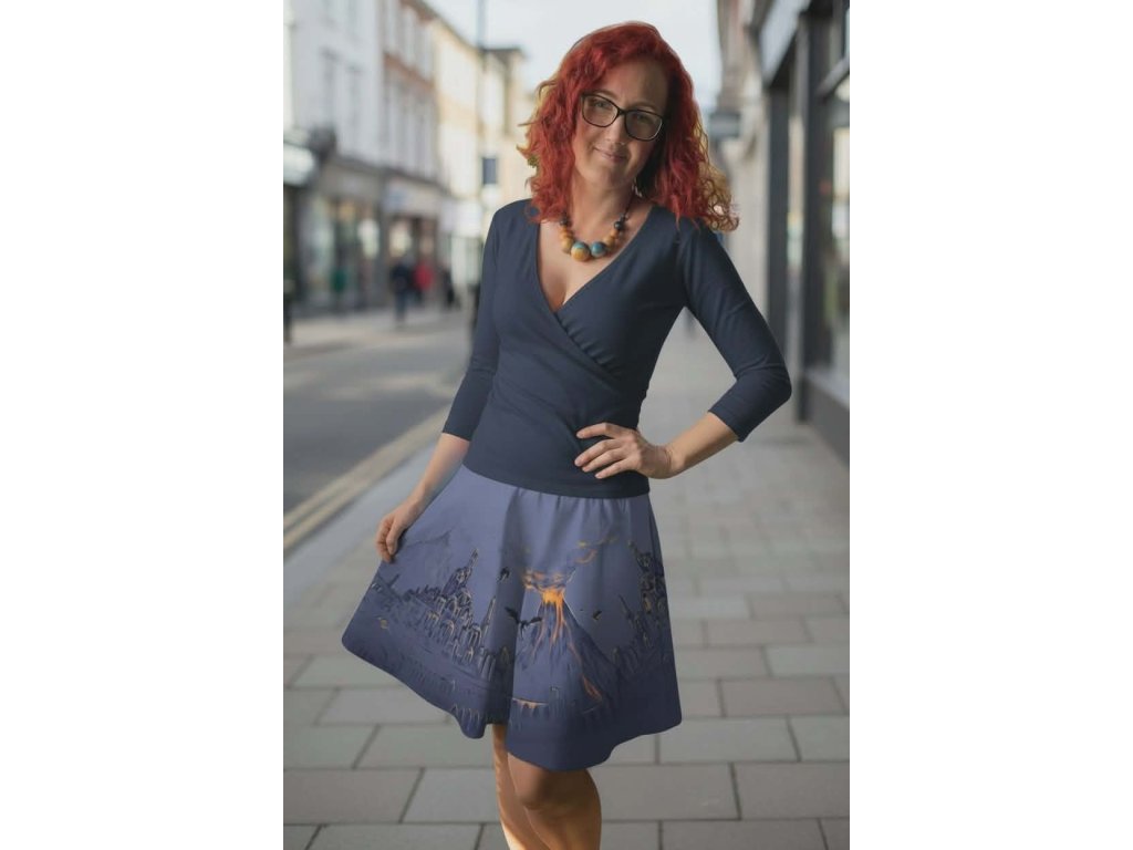 Varianta šatů Lilu s prodlouženým živůtkem a půlkolovou sukní.