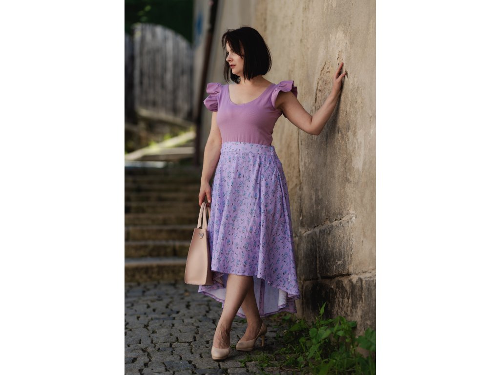 Asymetrická půlkolová sukýnka s polopevným pasem