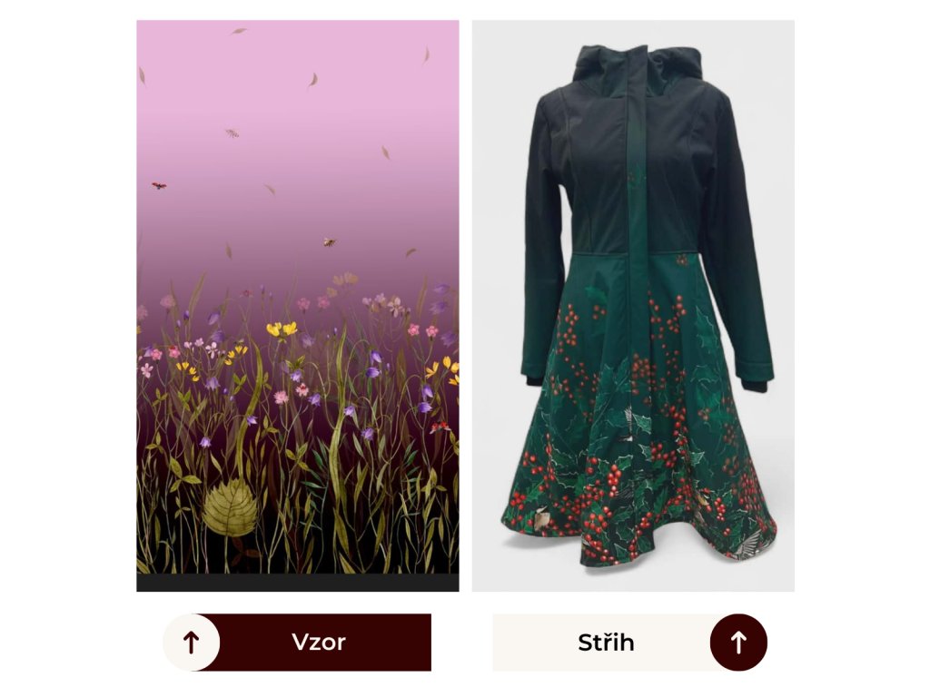 Čtvrtkolový softshelový kabát s autorským printem