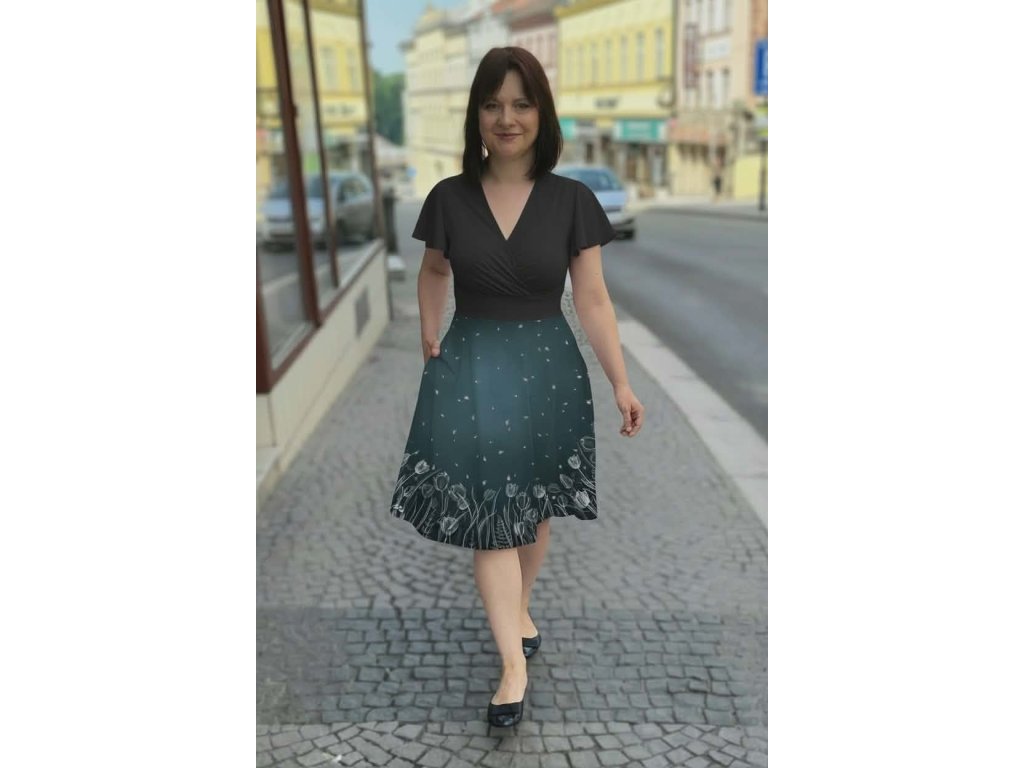 Amelie jsou půlkolové šaty s krátkým živůtkem,