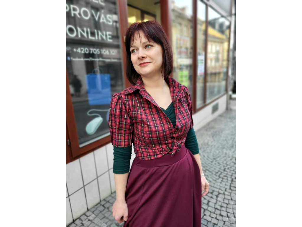 Tartanová košile červená + bordó - Clara