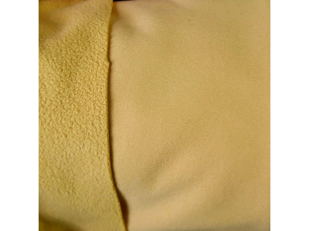 Pružný, měkký softshell, z rubu slabší chloupek.