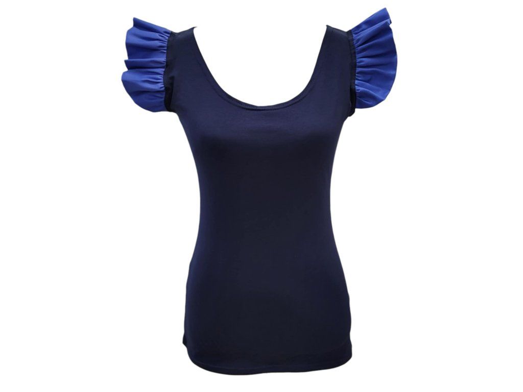 Rozverné a extravagantní tričko zdobené řaseným volánkovým rukávem
