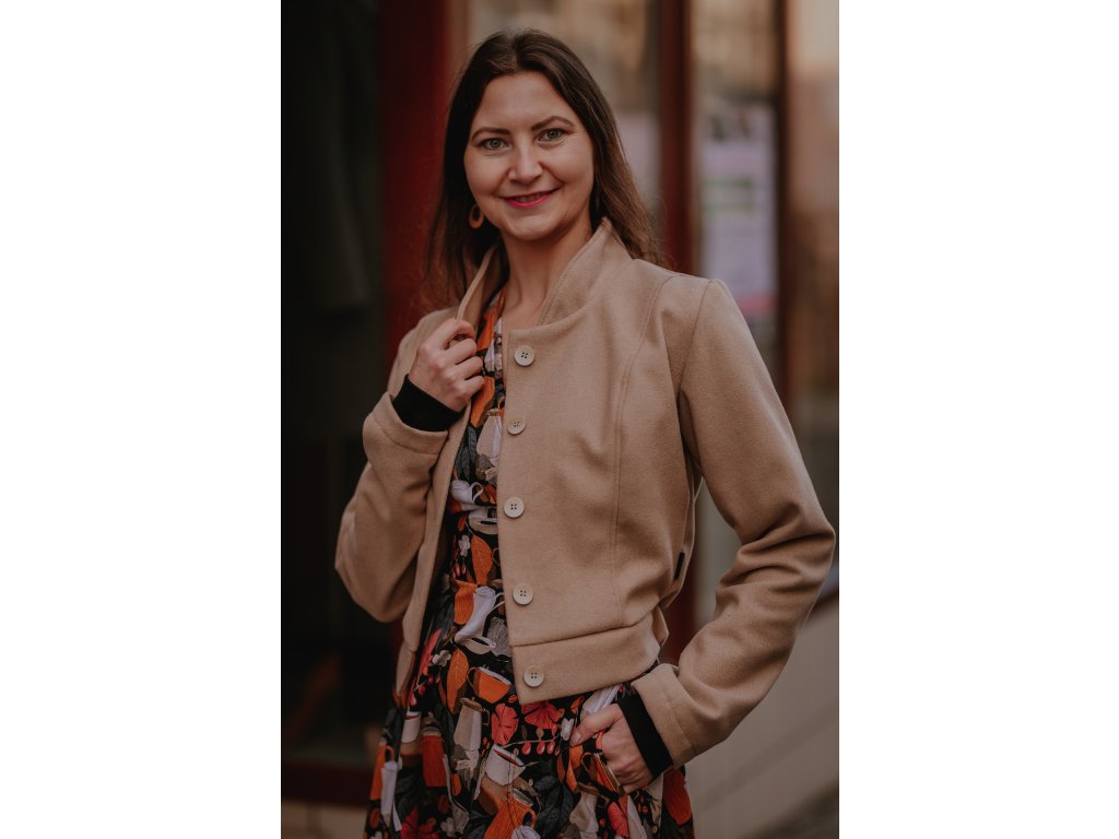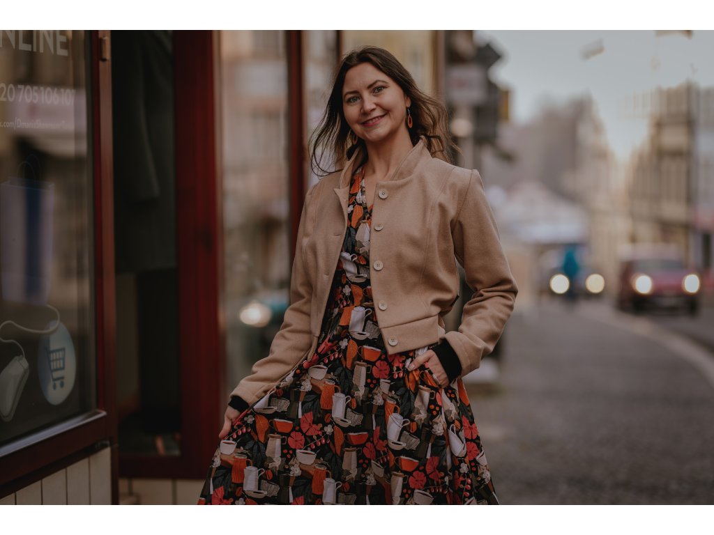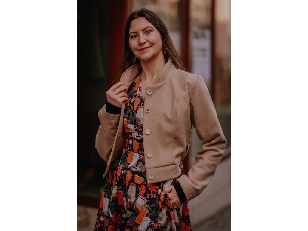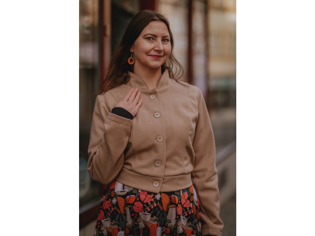 - kratší délka ideální ke kombinaci s pasovými sukněmi či šaty