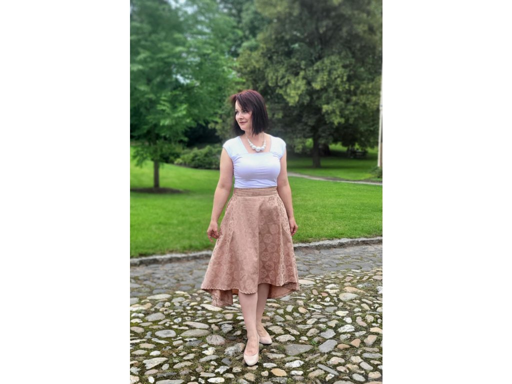 Asymetrická půlkolová sukýnka s polopevným pasem