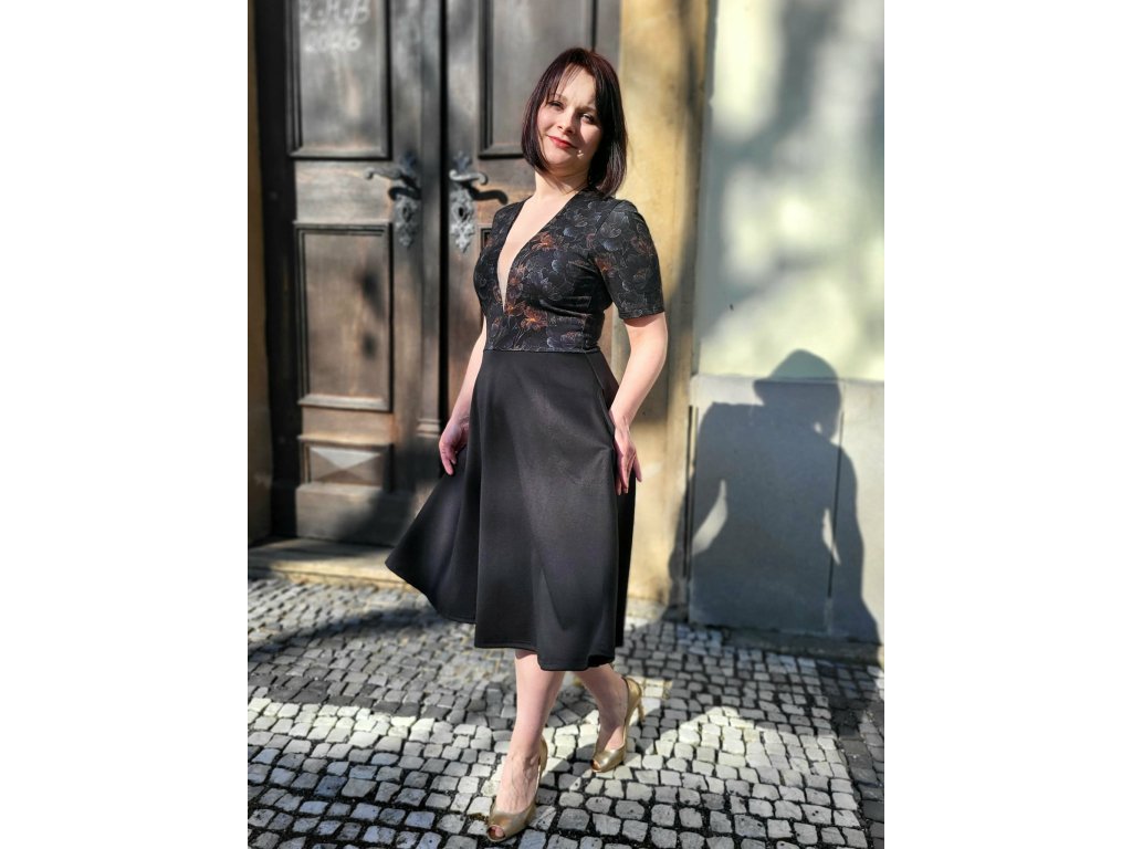 Kombinované šaty s tylovou vsadkou a půlkolovu sukní