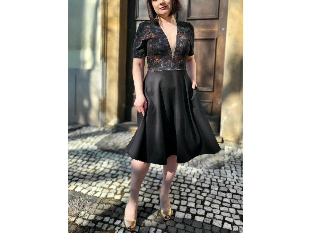 Kombinované šaty s tylovou vsadkou a půlkolovu sukní
