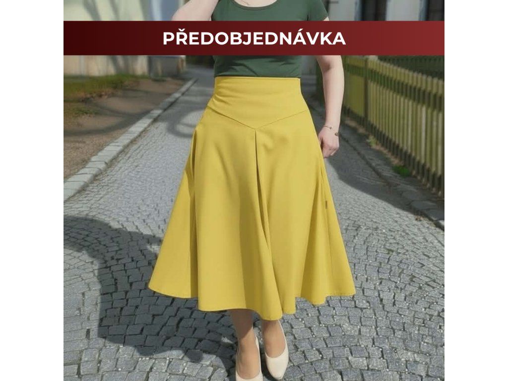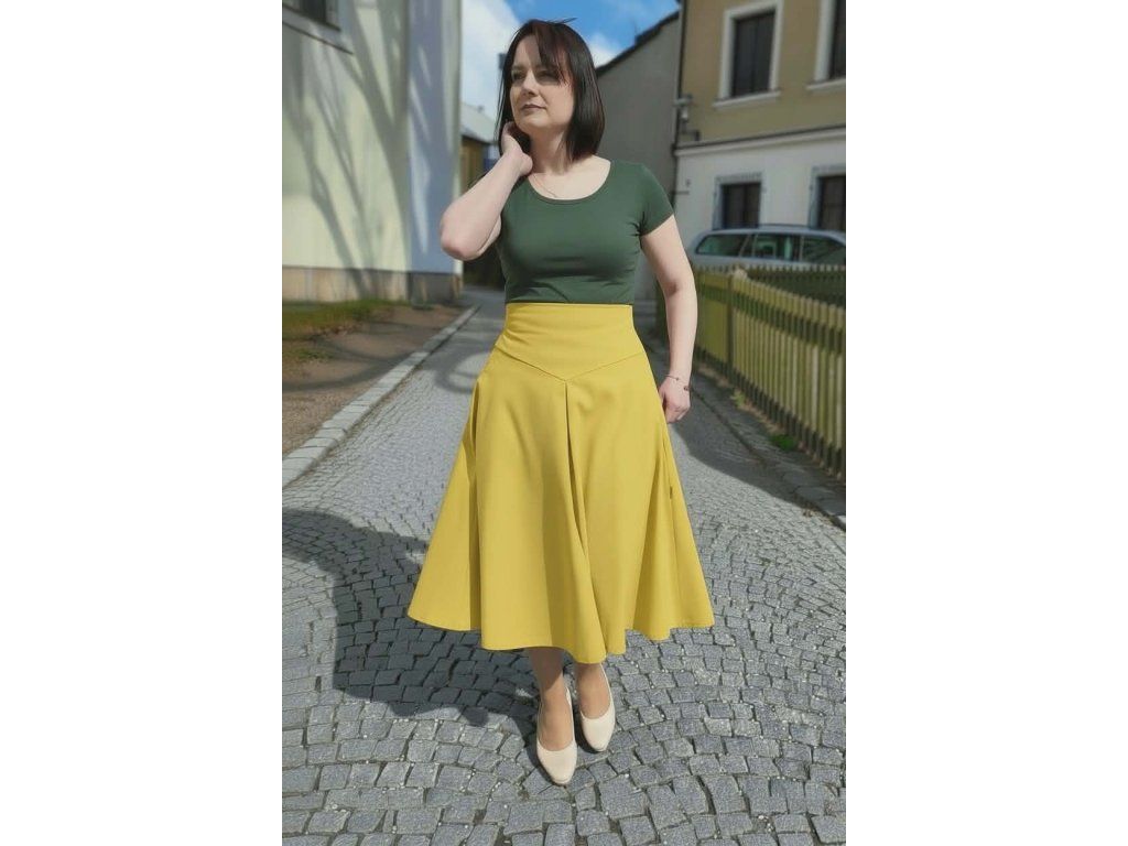 Katty je nevšední půlkolová sukně s výrazným vysokým pasem,